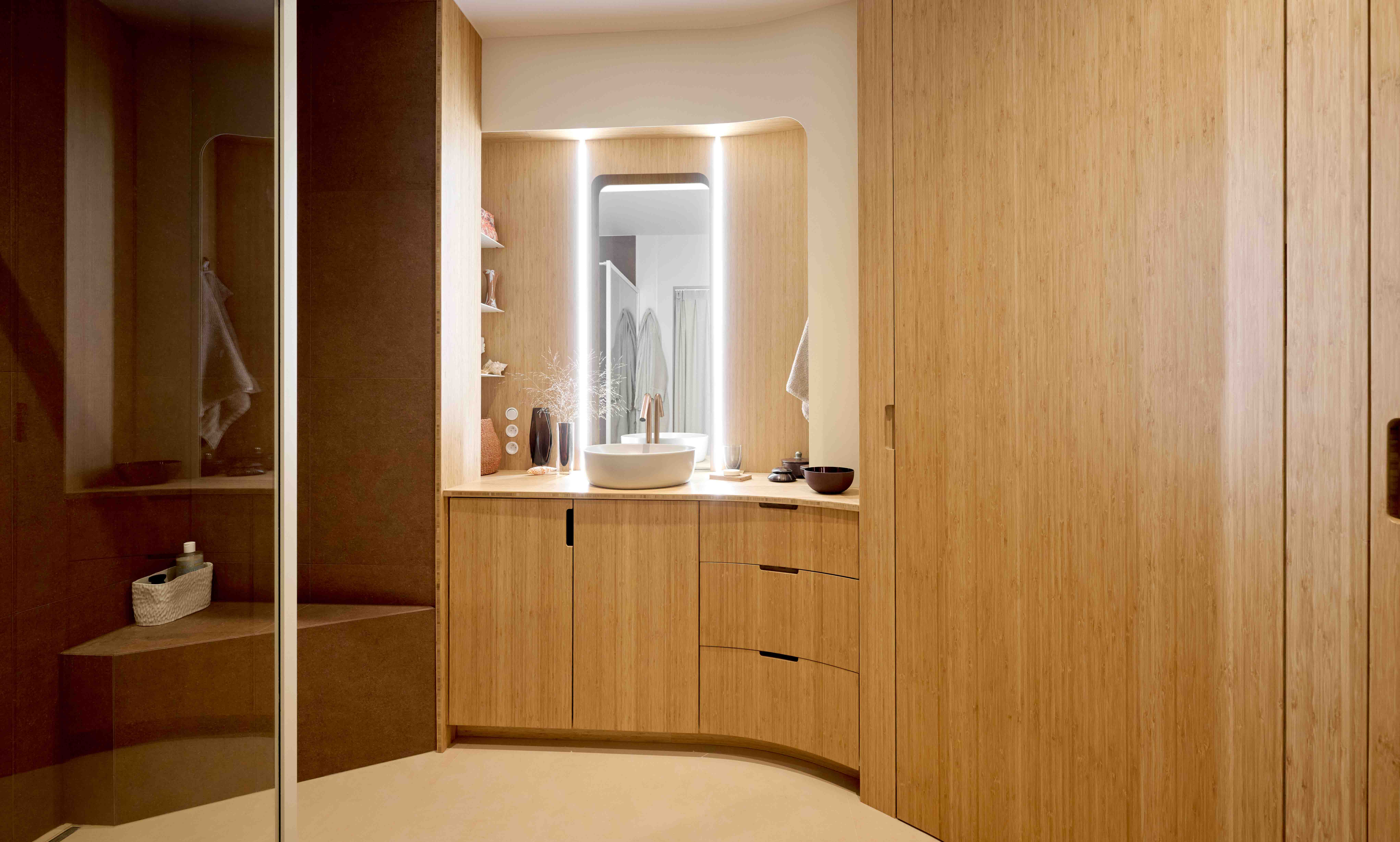 On n’associe pas spontanément le sur-mesure à la salle de bain. Et pourtant, c’est souvent dans ces espaces que chaque détail compte — en particulier lorsque les volumes sont restreints et nécessitent une réflexion approfondie pour en révéler tout le potentiel.